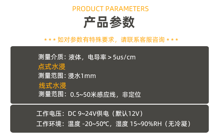 測量原理:根據電極或非定位感應線浸水阻值變化原理,由專用集成芯片進行信號放大、整形、比較、輸出高低電平或繼電器報警信號 測量介質:液體,電導率>5us/cm 點式測量范圍:浸水1mm 線式測量范圍:0.5~50米感應線,非定位 輸出信號:晶體管或繼電器干接點輸出 繼電器觸點容量:觸點容量(阻性):1A/AC220V、DC24V 誤報率:<100PPM 信號隔離:電源、輸入、輸出三重隔離 隔離強度:1500V 安裝方式:分體式 |